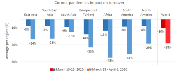 全球各地的公司預(yù)計(jì),2020年的營(yíng)業(yè)額將比2019年平均下降29%。這明顯低于第一次調(diào)查結(jié)果11%。