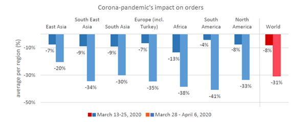 第二次國(guó)際紡聯(lián)新冠疫情影響調(diào)查的結(jié)果表明,自第一次調(diào)查以來,有更多的訂單被取消或推遲。全球訂單平均下降了32%,而在第一次調(diào)查中只有8%。