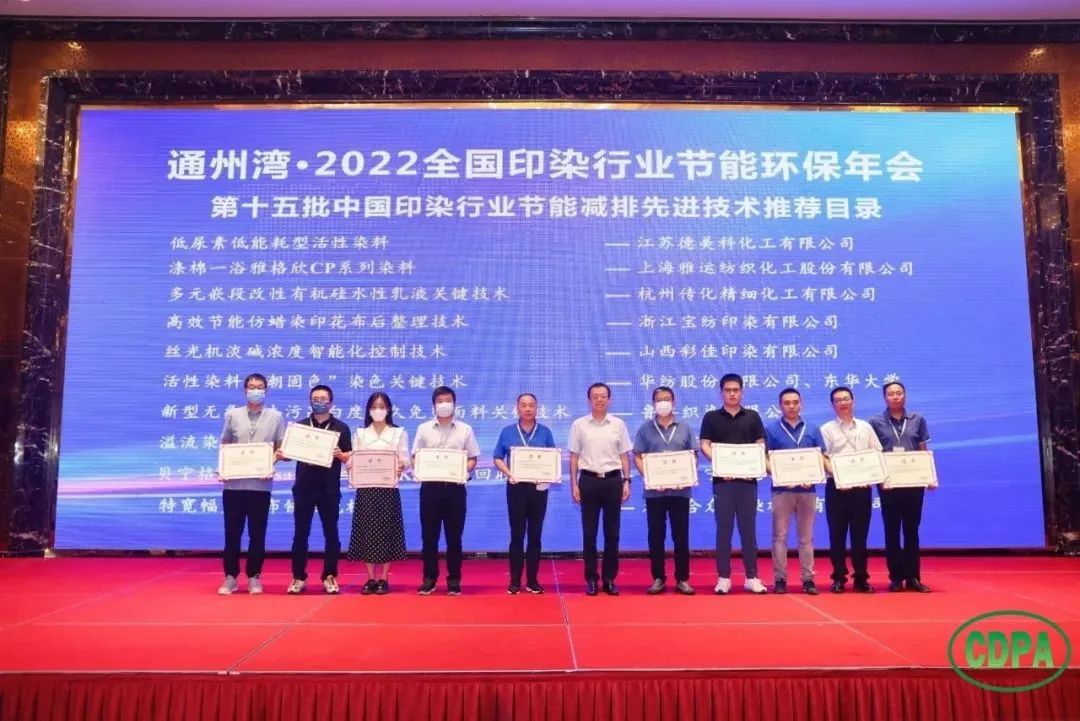 中國印染行業協會副會長兼秘書長林琳宣讀了《關于印發“第十五批中國印染行業節能減排先進技術推薦目錄”的通知》,并為相關企業頒發了證書。此次共推薦節能減排先進技術31項。