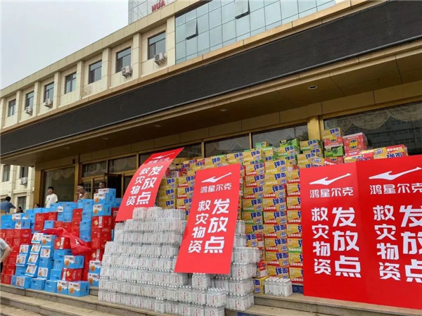 “風(fēng)雨同舟,眾志成城”,鴻星爾克救災(zāi)指揮小組緊急調(diào)動人力物力馳援京津冀災(zāi)區(qū),于救災(zāi)物資發(fā)放點為抗洪救災(zāi)的一線工作者及受災(zāi)群眾發(fā)放食品、飲用水、裝備等應(yīng)急物資。