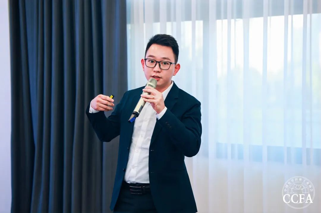 ▲中國化學(xué)纖維工業(yè)協(xié)會市場推廣部楊濤主持論壇