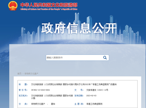 2月3日,文化和旅游部、人力資源社會保障部、國家鄉村振興局發布了2022年“非遺工坊典型案例”名單,確定了66個2022年“非遺工坊典型案例”,其中超四成為刺繡等紡織非遺工坊。