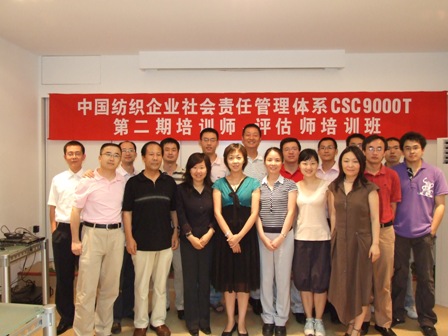 隨著中國紡織工業協會企業社會責任建設推廣工作的進一步廣泛深入地開展,尤其是中國紡織企業社會責任管理體系CSC9000T“10+100+1000”項目的抓緊落實,急需更多的CSC9000T專業培訓、評估專家充實到一線的企業中去工作,為此,2007年8月10--12日中國紡織企業社會責任管理體系CSC9000T第二期培訓師、評估]師培訓班在京舉行,來自RSCA 合作機構TUV NORD集團德國漢德技術監督服務有限公司、北京經典智業認證咨詢中心、SGS通標標準技術服務有限公司以及DNV挪威船級社的11位企業社會責任專家參加了培訓活動,中國紡織工業協會副會長孫瑞哲親自到會并希望專家們與中國紡織工業協會共同努力為推動中國紡織行業社會責任建設作出更大貢獻。