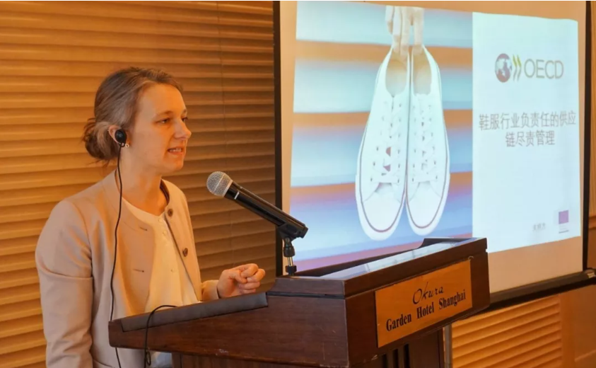 經合組織負責任商業行為中心政策顧問陳晶晶介紹了負責任商業行為(RBC)在經合組織和中國關系中發揮的重要作用,并分享了經合組織負責任商業行為中心在中國的最新工作進展,其中包括與中紡聯合作共同推動的鞋服行業指南的制定與應用,以及“亞洲負責任供應鏈”項目中國板塊的推動。她表示,希望將國際經驗與國內具體需求結合,通過深度交流及能力建設活動,有效提升企業的負責任商業行為意識及能力。
