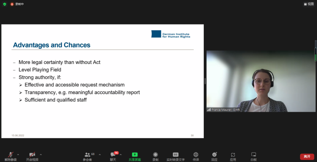 德國人權研究所國際人權政策部研究員Franca Maurer女士發言