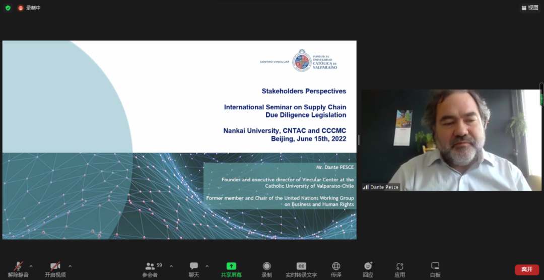 智利瓦爾帕萊索天主教大學社會責任與可持續發展研究中心執行主任、聯合國工商業與人權工作組前成員Dante Pesce教授發言