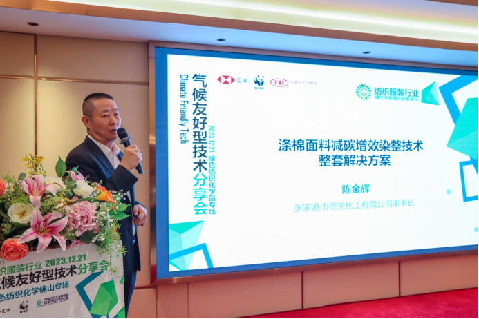 2023年12月21日,由中國(guó)紡織工業(yè)聯(lián)合會(huì)社會(huì)責(zé)任辦公室、中國(guó)紡織工業(yè)聯(lián)合會(huì)科技發(fā)展部聯(lián)合主辦的氣候友好型技術(shù)分享會(huì)-綠色紡織化學(xué)品專(zhuān)場(chǎng)在佛山西樵成功舉辦。會(huì)議由匯豐銀行(中國(guó))和世界自然基金會(huì)(瑞士)北京代表處支持,中國(guó)紡織信息中心、中聯(lián)品檢(佛山)檢驗(yàn)技術(shù)有限公司承辦。