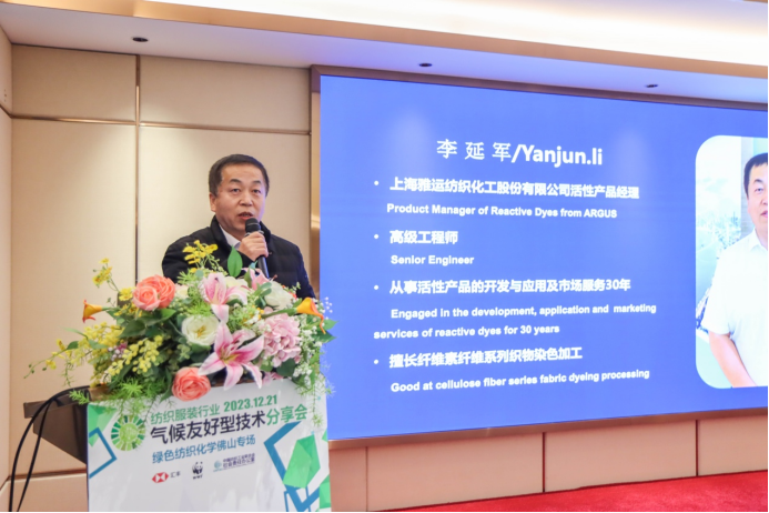李延軍先生分享了雅運(yùn)公司針對(duì)棉織物的低溫染色及高效節(jié)能水洗方案。此方案旨在實(shí)現(xiàn)節(jié)能低碳目標(biāo),通過(guò)創(chuàng)新的低溫染色技術(shù)和高效的水洗流程,顯著減少能耗和碳排放。他詳細(xì)介紹了該技術(shù)的具體應(yīng)用,強(qiáng)調(diào)其在提升環(huán)保性能和生產(chǎn)效率方面的優(yōu)勢(shì),為紡織行業(yè)的綠色轉(zhuǎn)型提供了重要的參考和示范。