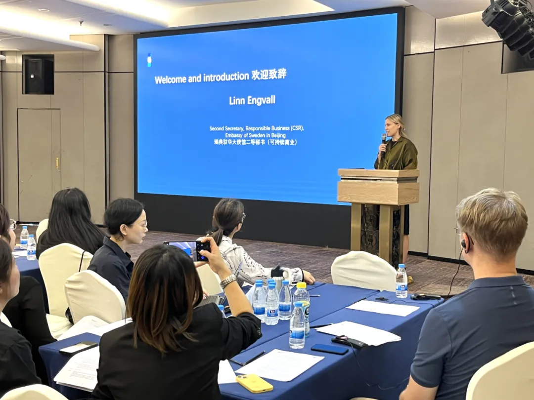瑞典駐華大使館企業(yè)社會(huì)責(zé)任中心主任(可持續(xù)商業(yè)二等秘書(shū))Linn Engvall女士在開(kāi)場(chǎng)致辭中表示,希望大家能夠通過(guò)此次培訓(xùn)研討會(huì)更加深入地了解供應(yīng)鏈盡責(zé)管理的相關(guān)知識(shí)和工具,提升供應(yīng)鏈責(zé)任管理能力,推動(dòng)企業(yè)和行業(yè)可持續(xù)發(fā)展。