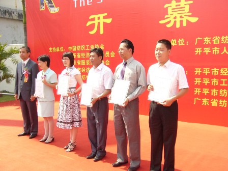 2008年10月17日,第五屆中國(開平)牛仔服裝節開幕式上,陳樹津副會長代表中國紡織工業協會為開平春暉股份有限公司、開平奔達紡織有限公司、開平富琳紡織制衣有限公司、開平平豐紡織有限公司和開平市英協制衣廠有限